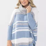 A Capa Com Gola Dupla Face Cloe Azul Listra Cinza, peça ampla com toque super macio do fio pluma. Um modelo sofisticado proporcionando um caimento super estiloso aliada ao conforto e aconchego do tricot. A Capa Com Gola Dupla Face Cloe Azul Listra Cinza acompanha gola avulsa duo color, proporcionando versatilidade e otimizando seus looks, devido a gola possuir 2 cores diferentes.