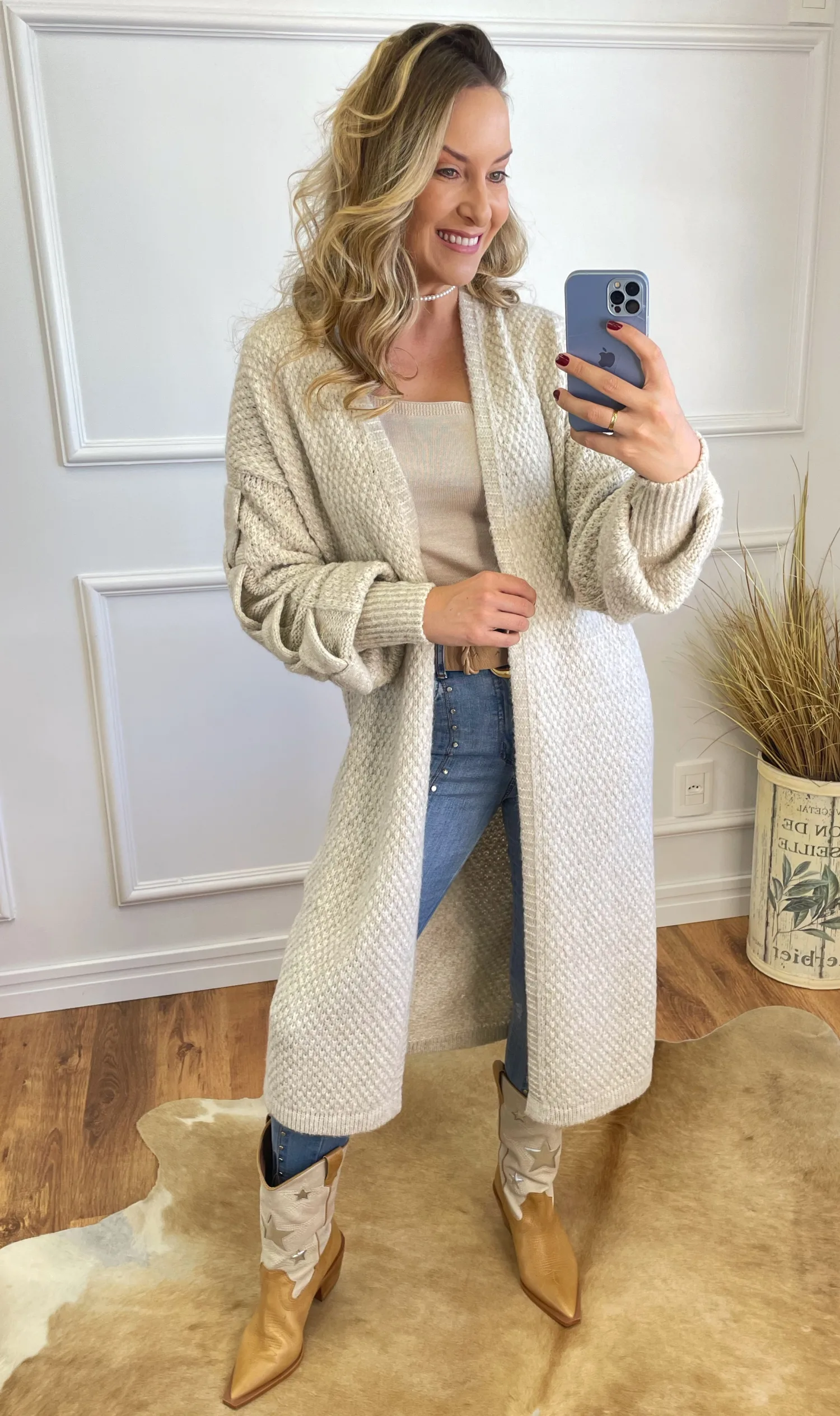 O Casaco Feminino Alongado Camila Bege possui abertura frontal sem fechamento . O cardigan feminino é uma peça curinga e ideal para acrescentar aquele toque quentinho nos seus visuais, e também entrega charme por conta da modelagem e detalhes que fazem toda a diferença. Com uma composição leve e delicada. Em geral, o Casaco Feminino Alongado Camila Bege combina com bermudas de sarja, calças mais largas e jeans. Para um look mais descolado, use o Cardigan com um short jeans ou legging e rasteirinhas. Jogue o cardigan com uma calça skinny, de montaria ou uma saia de couro e um salto e terá um visual bem mais elegante.