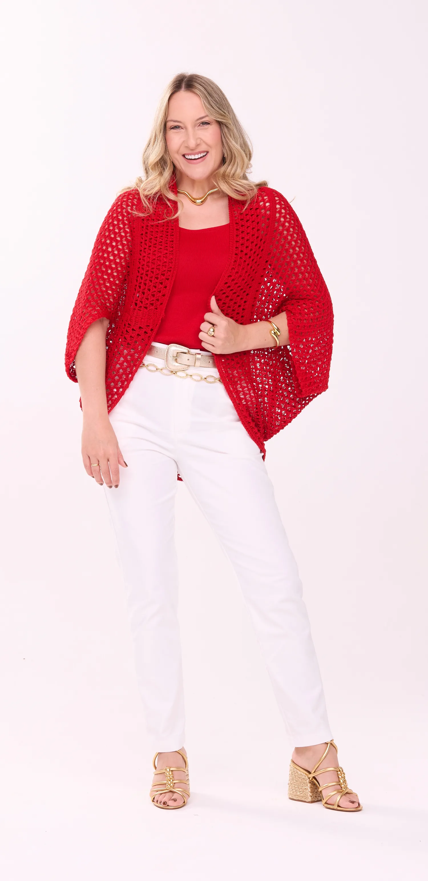 O Kimono Fio Nobre Alice Vermelho Possui abertura frontal com mangas amplas. Em geral, o Kimono Fio Nobre Alice Vermelho combina com bermudas de sarja, calças mais largas e jeans. Para um look mais descolado, use o kimono com um short jeans ou legging e rasteirinhas. Jogue o kimono com uma calça skinny, de montaria ou uma saia de couro e um salto e terá um visual bem mais elegante.